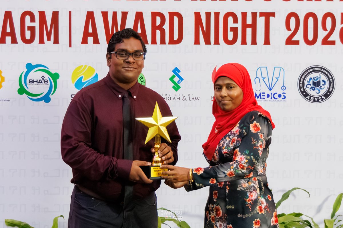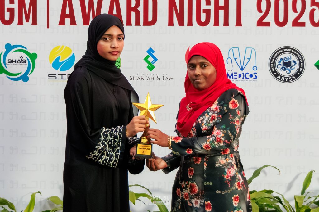 އެމް.އެން.ޔޫ.އެސް.ޔޫ މީޑިއާގައި 2025 ވަނަ އަހަރު މަސައްކަތްކުރި މެންބަރުންގެ ތެރެއިން އެންމެ ހަރަކާތްތެރި މެންބަރަކަށް ފެކަލްޓީ އޮފް ހޮސްޕިޓާލިޓީ އެންޑް ޓުއަރިޒަމް ސްޓަޑީޒްގެ ދަރިވަރު މުޙައްމަދު އަހުޒަމް އަޒްހާން ހޮވިއްޖެއެވެ.