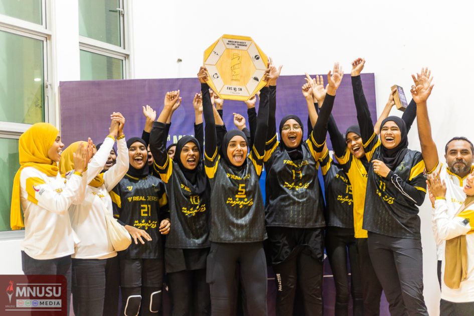 2024 ވަނަ އަހަރުގެ އެމް.އެން.ޔޫ.އެސް.ޔޫ އިންޓަރ ފެކަލްޓީ ވޮލީ ބޯޅަ މުބާރާތް ފެށުމުގެ ގޮތުން ކުޅެވުނު ތާރީޙީ ލެގަސީ ޝީލްޑް އަންހެން މެޗް ފެކަލްޓީ އޮފް ހެލްތް ސައިންސަސް (އެފް.އެޗް.އެސް)ގެ ޓީމާއި ވާދަކޮށް ސްކޫލް އޮފް ނާރސިންގ (އެސް.އެން) އިން ކާމިޔާބުކިށްފިއެވެ.